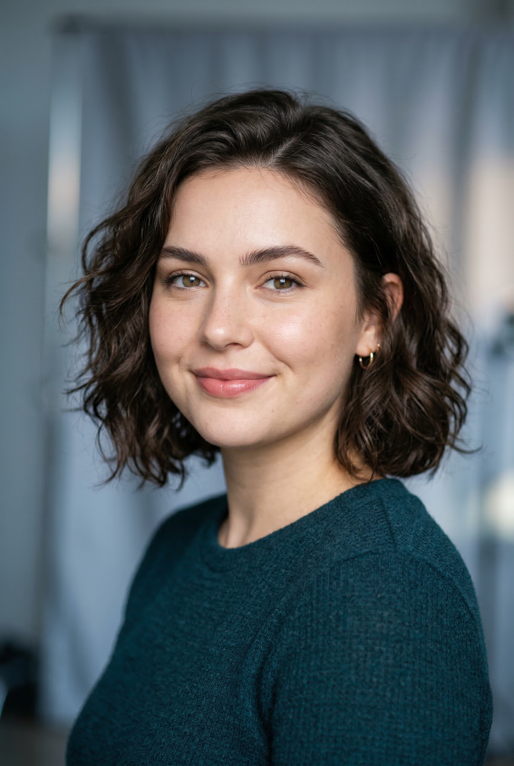 Volume is everything when you have a round face. I use a diffuser and some mousse to enhance my natural waves, then scrunch in some texturizing spray. The height at the crown elongates my face shape, while the waves add that effortless, beachy vibe I’m always chasing.