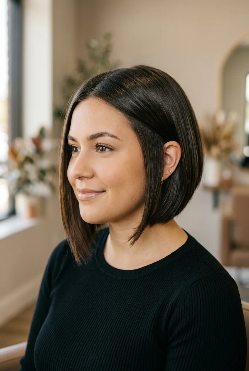 The science behind it makes sense too. Round faces benefit from vertical lines and angles that elongate rather than widen. A well-cut bob can actually create those lines better than long hair that just hangs there doing nothing.